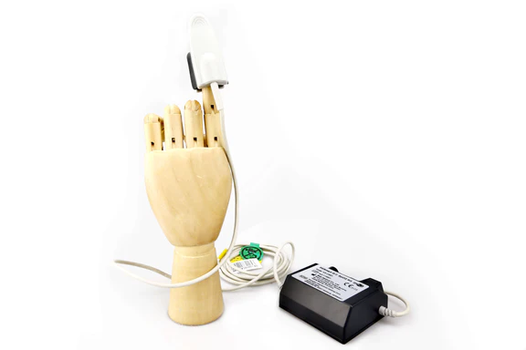 يستخدم الجهاز على الأصبع كأي قارئ اكسجين, ويتم شبكه بجهاز ال CPAP الخاص بك من BMC>